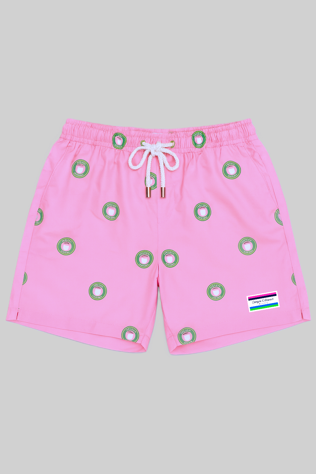 Featuring mini coffee cup icons and a punchy pink tone, these shorts are made for poolside lounging. Cut from premium quick-dry fabric, they move seamlessly from swim to street — no effort required.